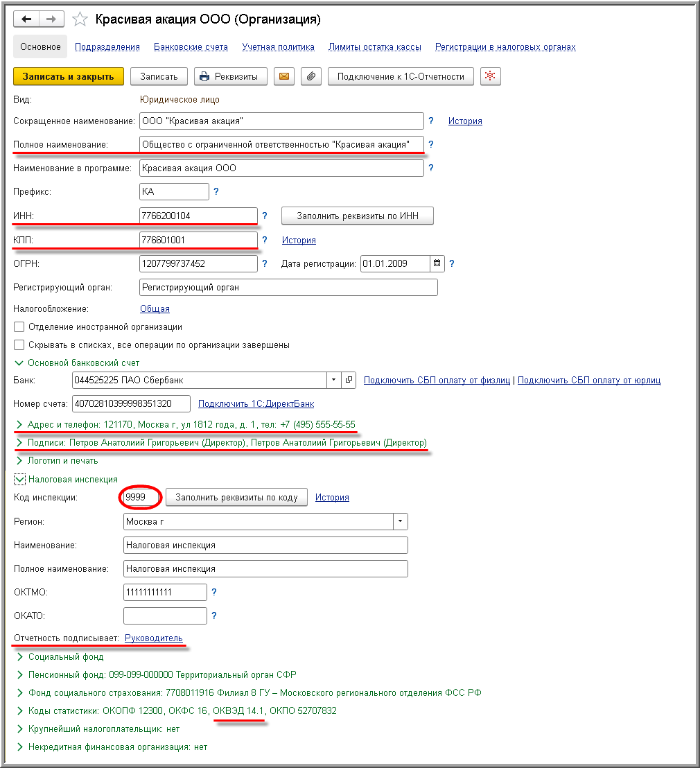 Организация: ООО «Красивая акация», г. Москва, общая система налогообложения.