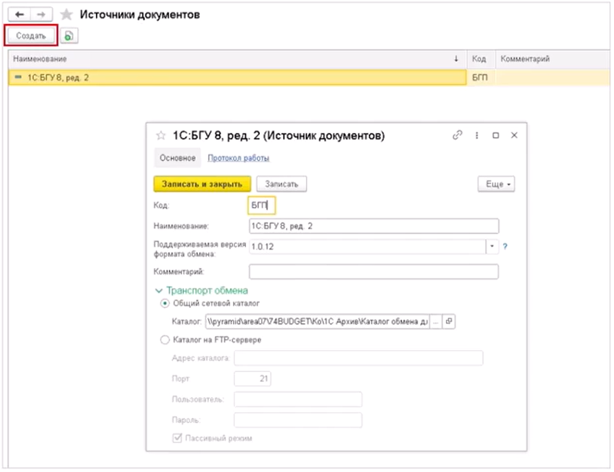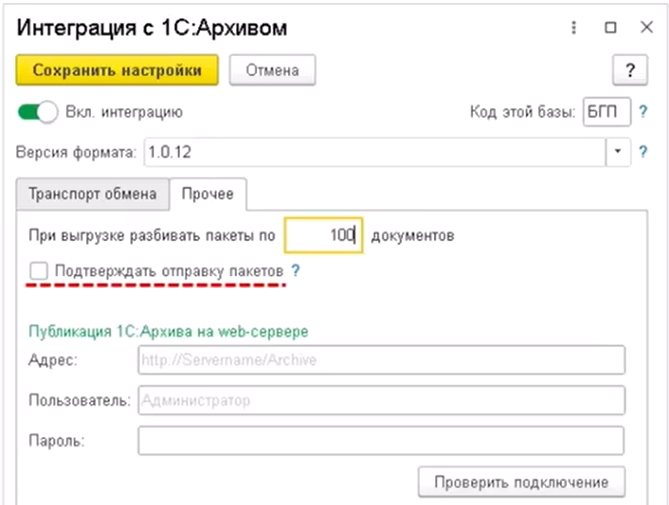 Отправка сведений электронных документов 1С:БГУ в 1С:Архив