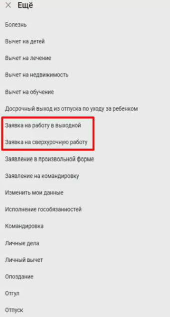 - Заявление на сверхурочную работу.