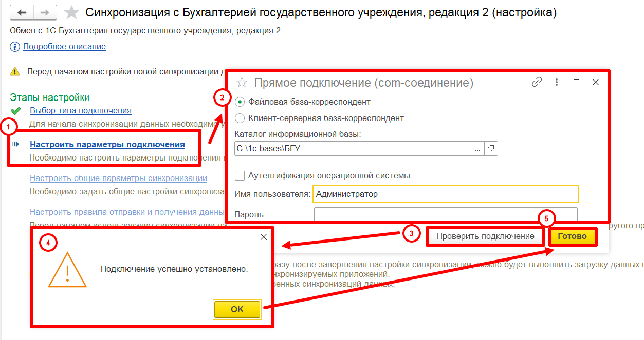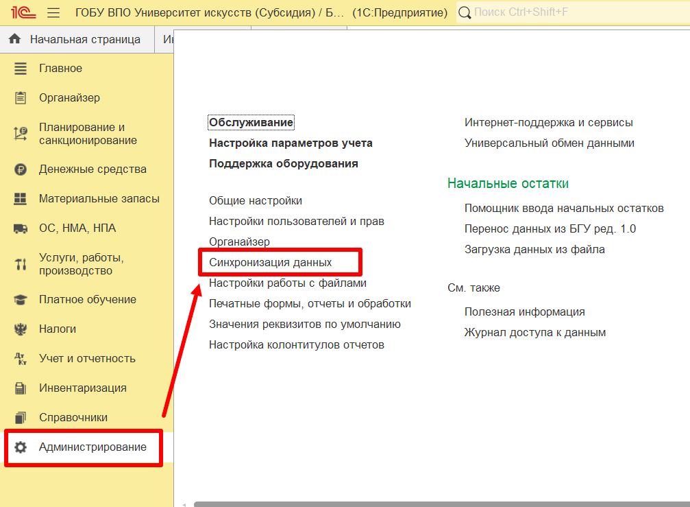 Шаг 2. Настройка синхронизации в 1С:БГУ ред. 2.0