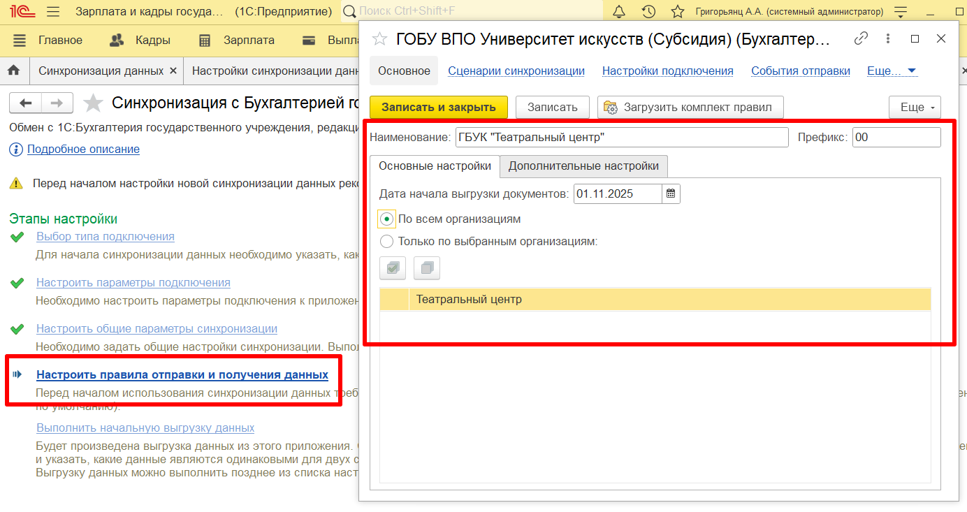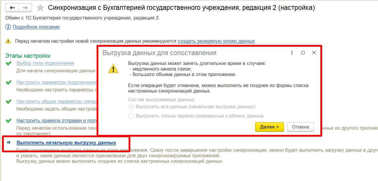 Важно: перед началом настройки создайте резервные копии обеих информационных баз (ИБ).