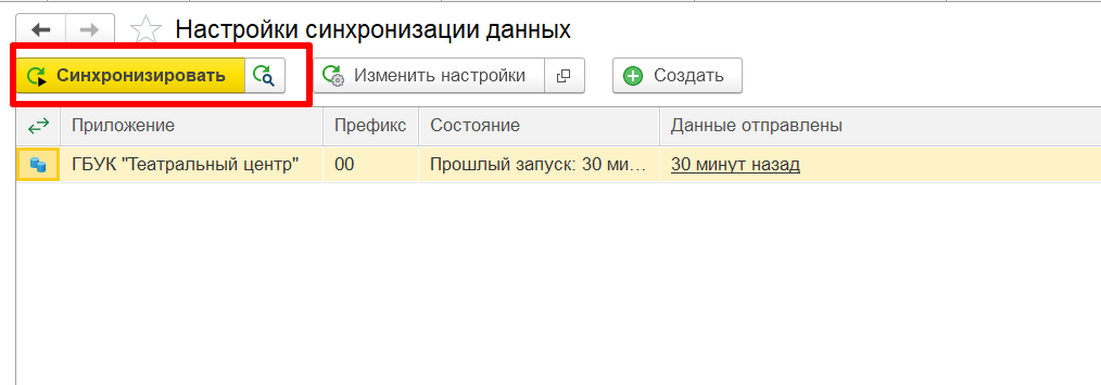 По завершении настройки в обеих ИБ появится команда «Синхронизировать».