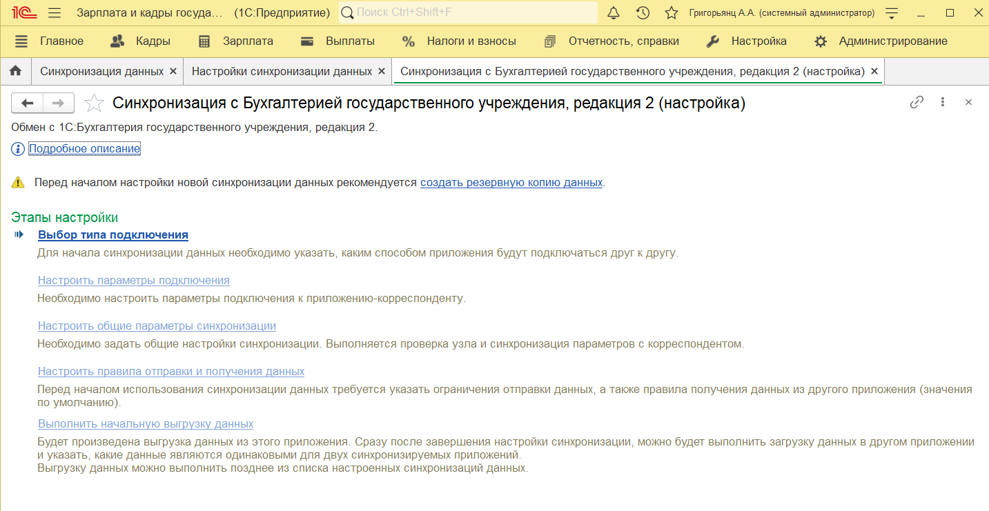 В этой статье мы разберем как настроить обмен данными между 1С:Зарплатой и кадрами государственного учреждения и 1С:Бухгалтерией государственного учреждения.